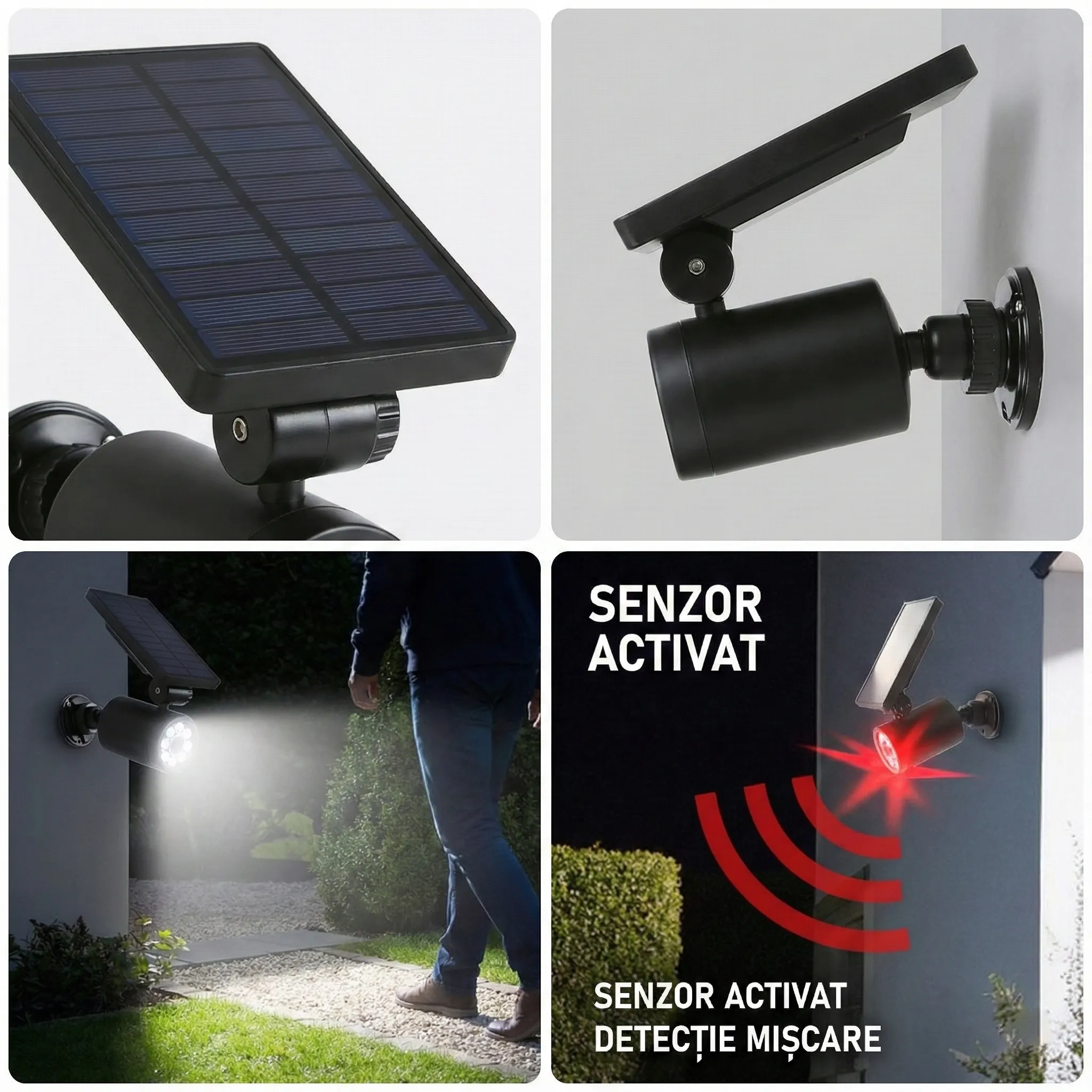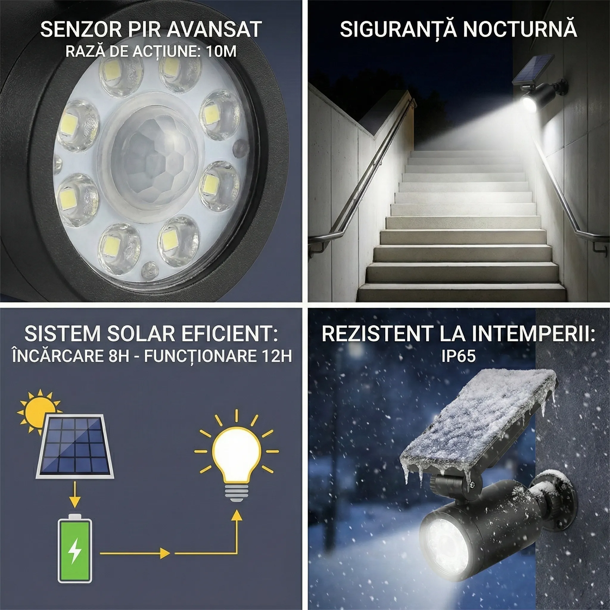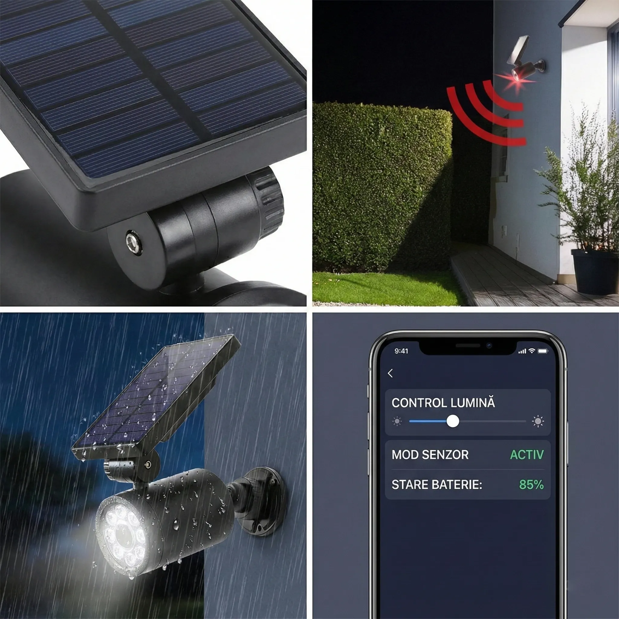 Uită de grija schimbării bateriilor sau de tragerea cablurilor prin pereți. Panoul solar integrat încarcă acumulatorul inclus pe timpul zilei, asigurând funcționarea non-stop. Cu certificare IP44, rezistă la ploaie și praf, fiind perfectă pentru curte, garaj, intrarea în bloc sau depozite. Instaleaz-o în câteva minute și bucură-te de liniște!