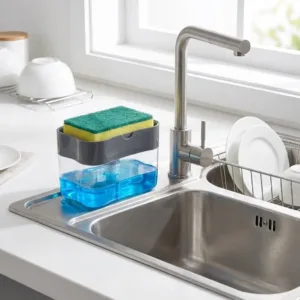 – Eficiență Dublă: Combină dispenserul de detergent cu suportul de burete într-un singur corp.
