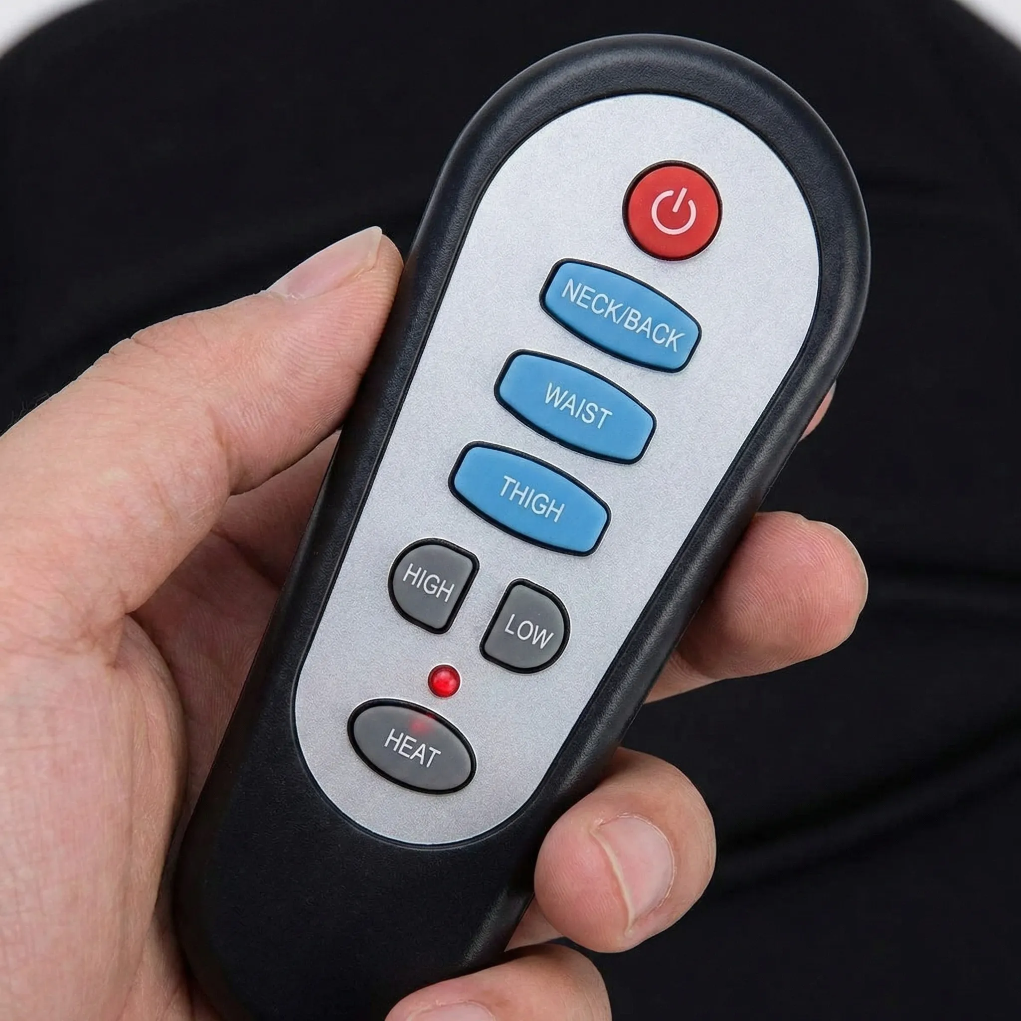 Telecomandă pe Fir Integrată: Deții controlul absolut, simplu și rapid. Telecomanda intuitivă îți permite să activezi și să ajustezi funcțiile de masaj și încălzire fără a fi nevoie să îți schimbi poziția comodă.