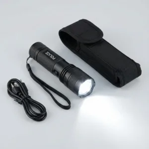 Siguranța utilizatorului este prioritară. Lanterna dispune de un buton specializat care previne descărcările accidentale, oferind control total asupra funcțiilor. Mai mult, acumulatorul integrat se reîncarcă rapid direct la priză prin cablul inclus, eliminând costurile suplimentare și dependența de baterii consumabile.