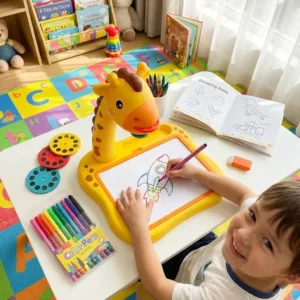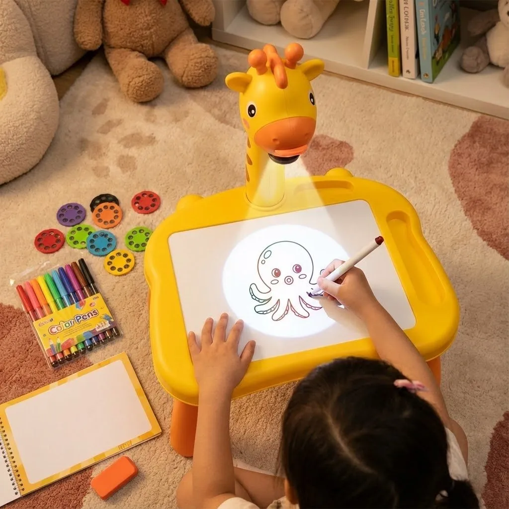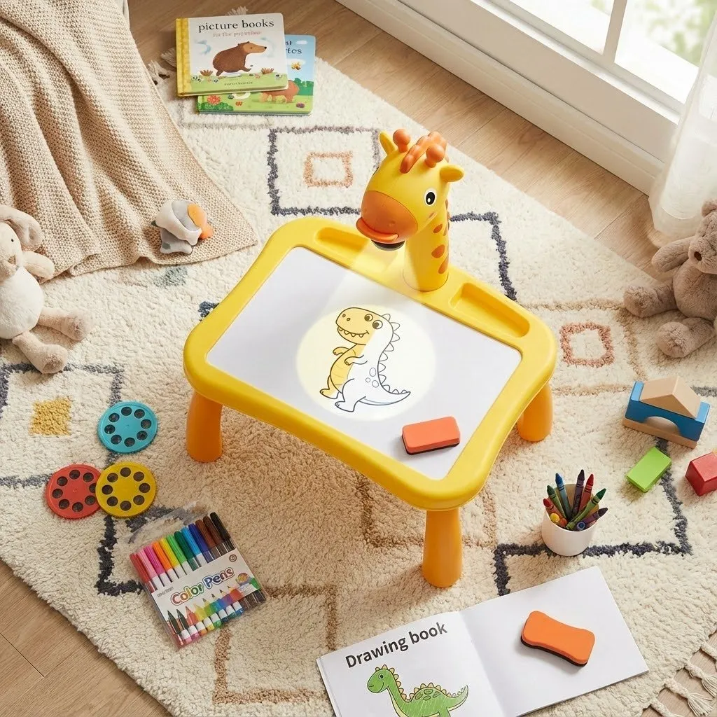 Căutarea unei activități care să țină copiii departe de ecrane și să le stimuleze creativitatea poate fi o provocare. Masa-Proiector de Desenat este soluția perfectă care îmbină tehnologia distractivă cu arta tradițională. Proiectorul afișează imagini clare pe suprafața de lucru, pe care copilul le poate contura și colora cu ușurință, oferindu-i satisfacția imediată a unui desen reușit.