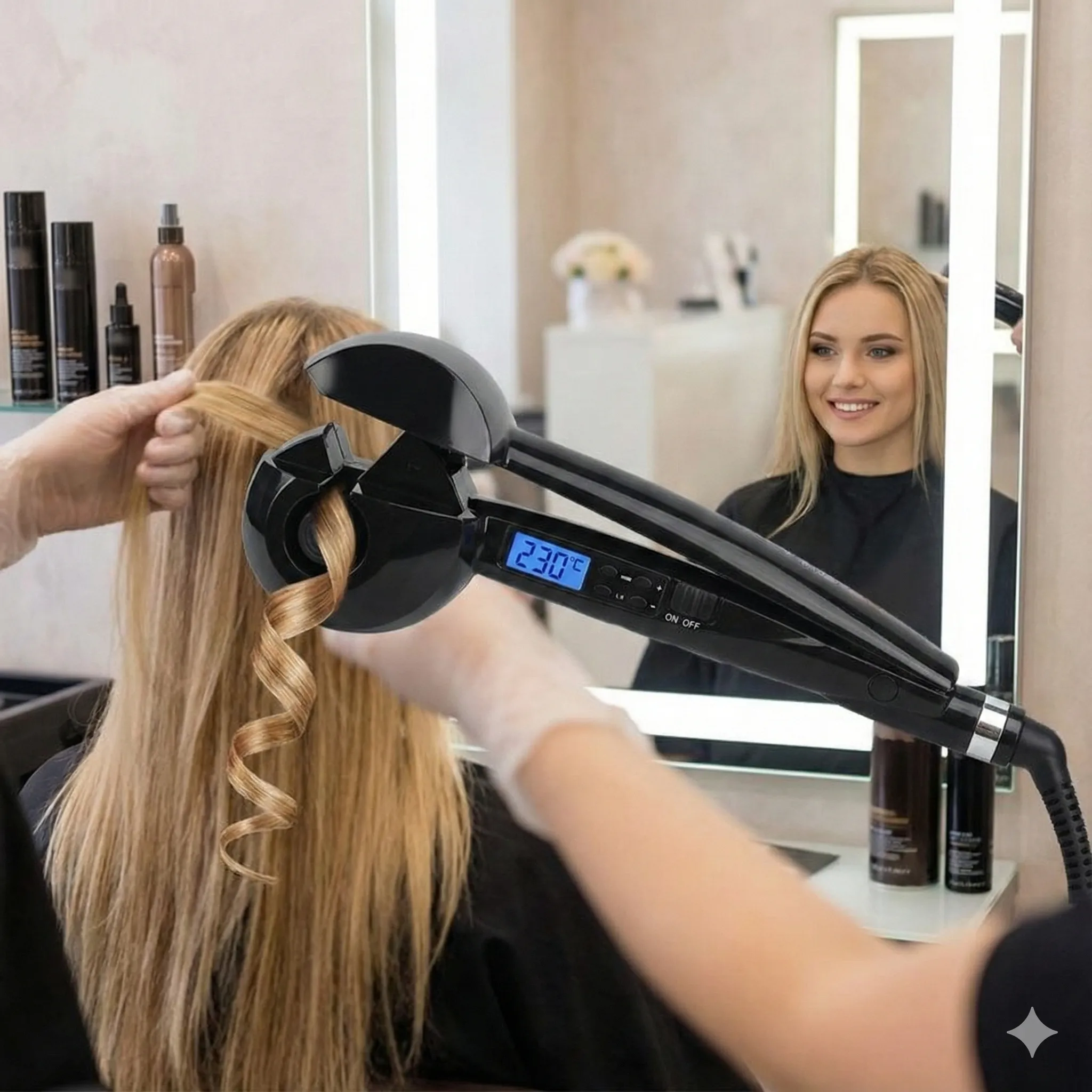 Cronometru Inteligent pentru Rezultate Variate: Fie că îți dorești “beach waves” lejere (setare de 8s) sau onduleuri strânse și definite (setare de 15s), cronometrul integrat te avertizează exact când bucla este gata. Gata cu ghicitul și gata cu riscul de a ține părul prea mult sub căldură!