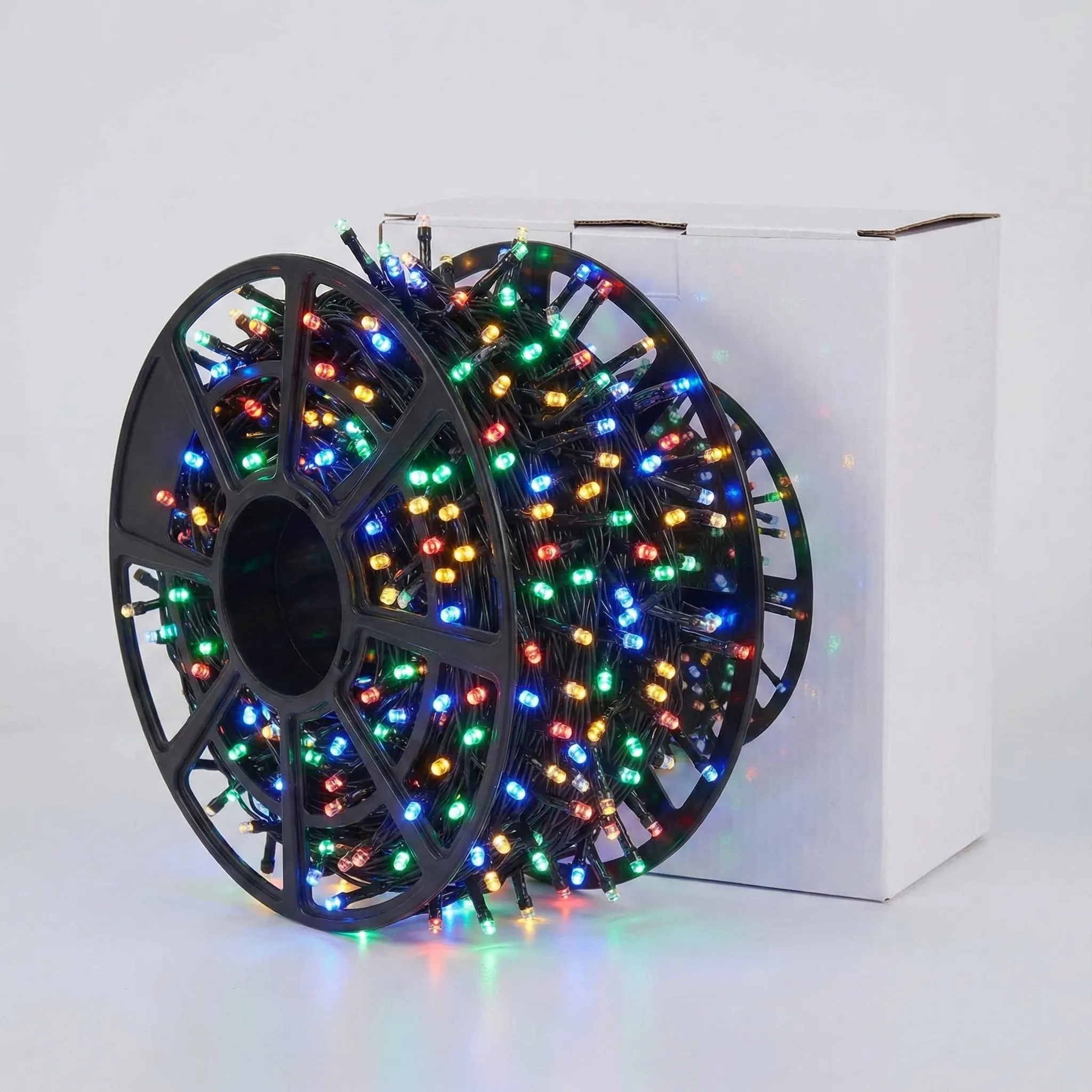 Acest pachet include 4 unități independente de câte 100 de metri fiecare. Cu un total de 2800 de LED-uri multicolor, ai capacitatea de a contura fațade întregi, de a înconjura grădini masive sau de a lumina spații comerciale complexe fără a avea nevoie de zeci de prize diferite. Este volumul de lumină necesar pentru decoruri profesionale care impresionează de la distanță.