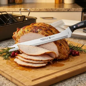 – 1 x Cuțit pentru tranșat: Pentru felii subțiri și egale de friptură sau jambon.