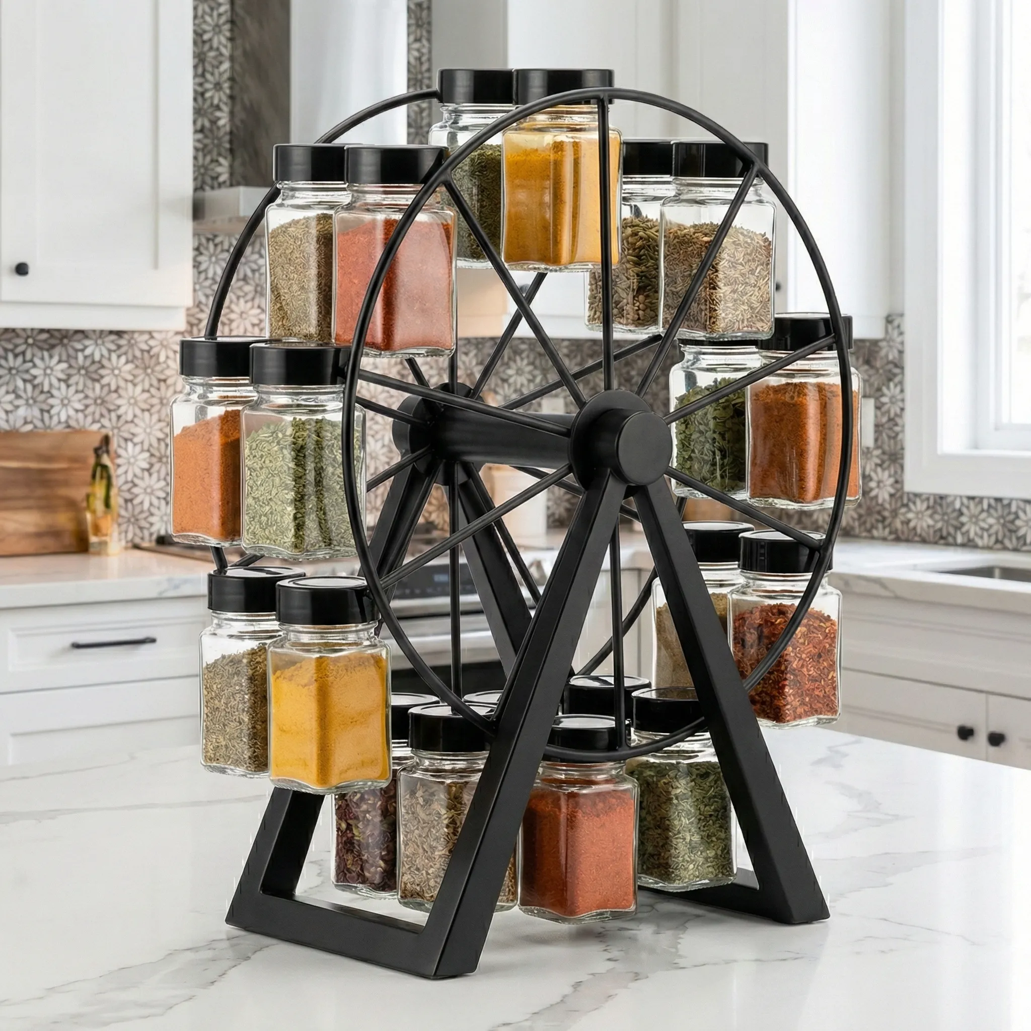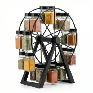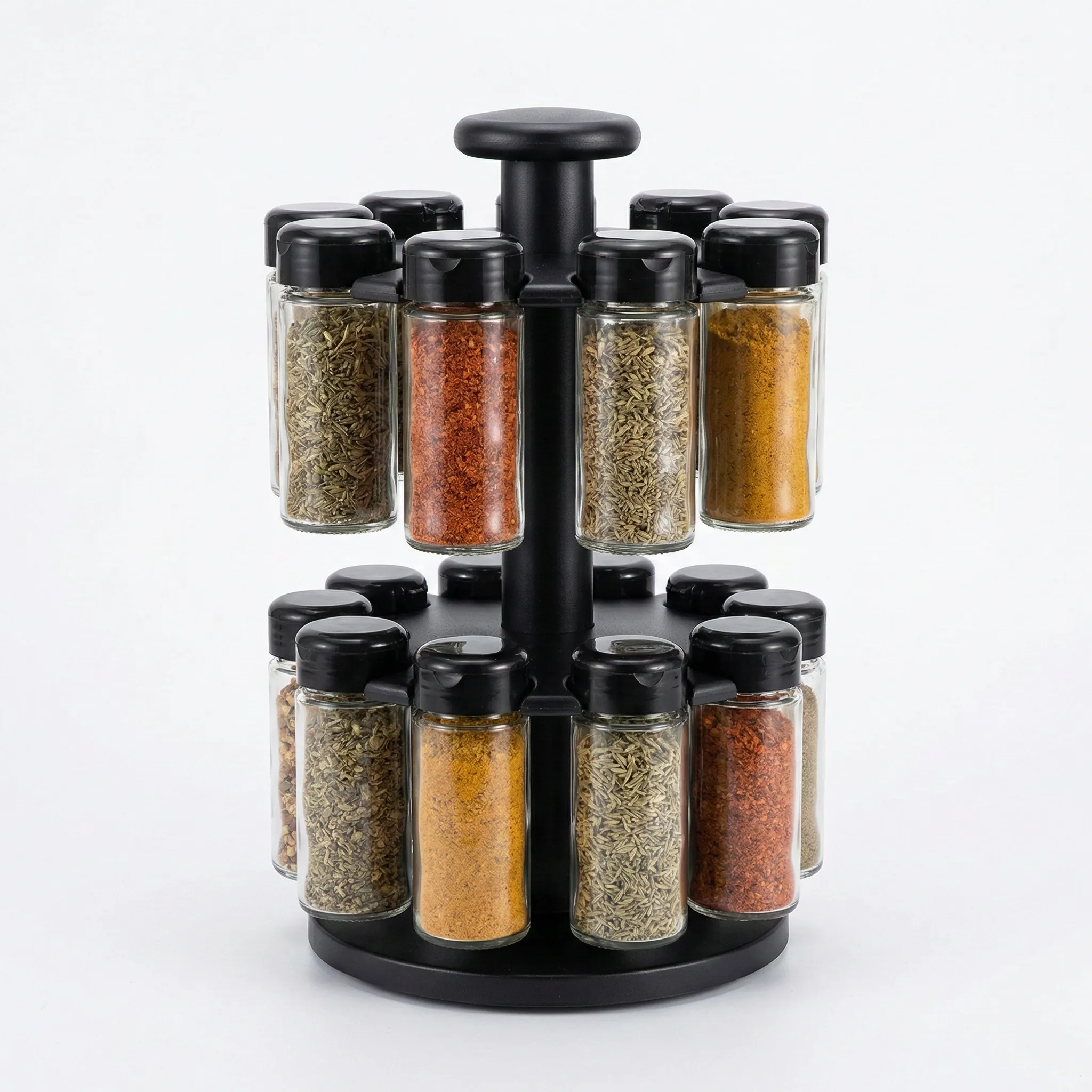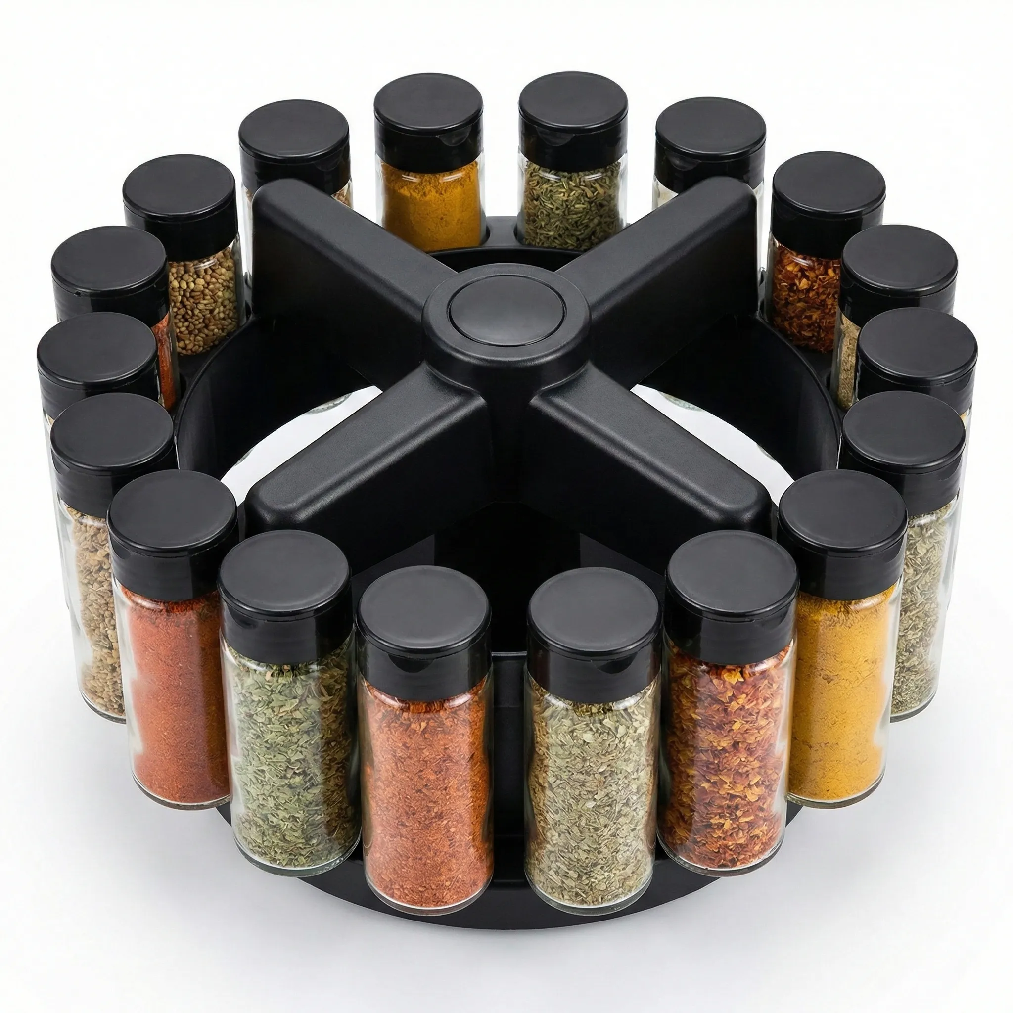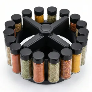 • Suport Rotativ la 360°: Accesează rapid orice borcan printr-o simplă rotire. Nu mai este nevoie să cauți prin spatele dulapurilor sau să muți întregul set pentru a găsi piperul sau busuiocul.