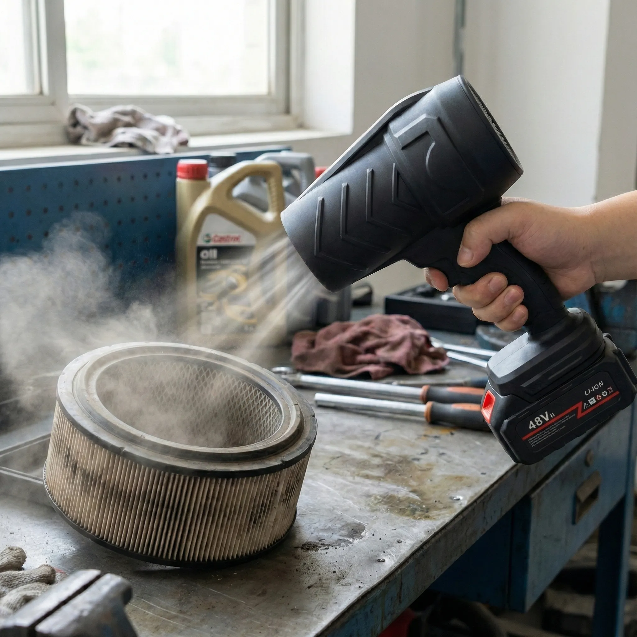 Motorul său puternic, dar surprinzător de silențios, generează un jet de aer concentrat care dislocă murdăria din cele mai inaccesibile colțuri, fără a face zgomotul infernal al unui compresor clasic. Ai control total asupra puterii, putând ajusta intensitatea fluxului de aer în funcție de delicatețea suprafeței pe care o cureți.
